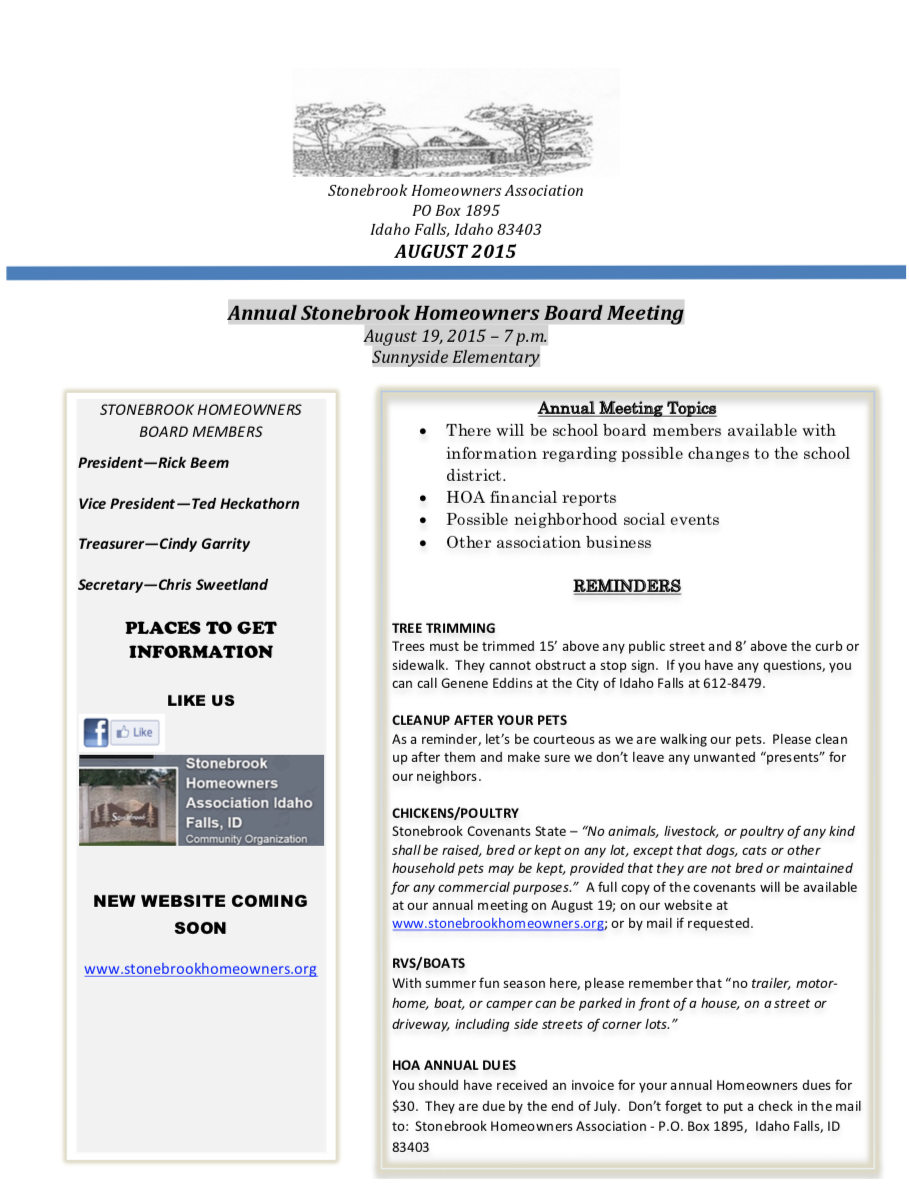 Stonebrook Home Owners Association in Idaho Falls, Idaho.